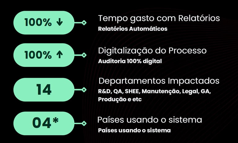 Em 2023 iniciamos o desenvolvimento da primeira versão da nossa solução, foi implantada em 4 subsidiárias da LG Eletronics.
